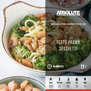 Stir the prawns with the pesto and tip into the hot pan turning frequently for 2–3 minutes until the prawns are pink.